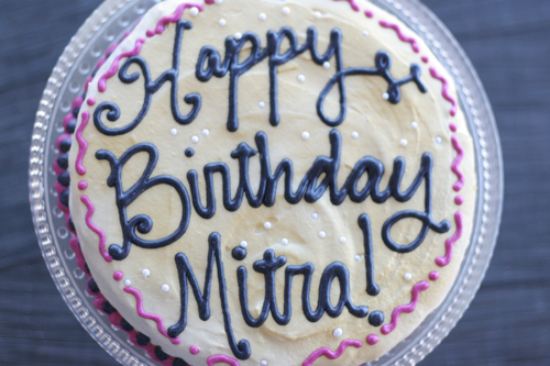 Luckily, when you’re 8 and/or a dwarf hamster and no one has led you to believe you’re getting a pink zebra cake (thank goodness I had the foresight to “surprise” her with the cake), you are still pretty excited just to merely see that your cake is pink inside, even though there are a few white parts. One of the saving graces is that I made the outside of the cake metallic gold, by frosting it with vanilla icing and spraying it with a fun yet slightly questionable product I got at Williams-Sonoma called Gold Dazzling Delight Decorating Spray. (I’m kind of freaking out right now because this product is not to be found ANYWHERE on the internet! I hope it wasn’t recalled or something. But c’est la vie. It’s basically this.) I finished it off the cake with candy luster pearls as well.