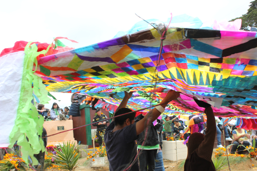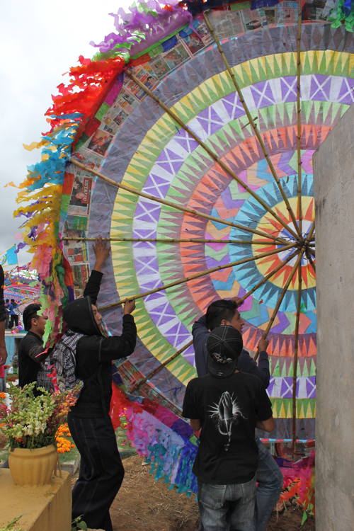 As we got closer to the cemetery, things got more and more crowded. We spotted groups of kids and teenagers hauling their homemade tissue paper kites up to the graveyard to prepare for the festivities.