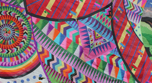The huge kites are made of finely cut pieces of tissue paper. They’re supported with a structure of wood built on the back. Our guide said the delicate kites took months to complete even with many people working on them.