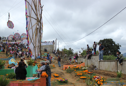 As we left, the town was packed with people clamoring to get to the cemetery. We were glad we had arrived early so we could enjoy the street scene and the kite raising before it got too crowded.