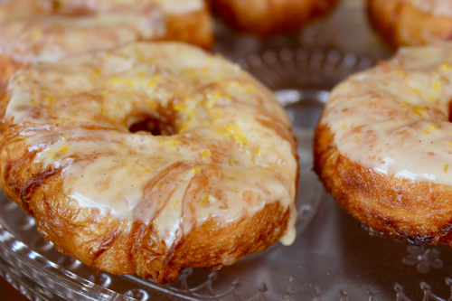 This is not really a recipe, but more of a how-to, because the secret to easy homemade cronuts is buying frozen croissants. Trader Joe’s has excellent frozen croissants so that is what I used. They are made by the same chef who makes the bazillion dollar Williams-Sonoma croissants. They make great cronuts. I opted for an orange vanilla glaze on these, which was fantastic, but you can top them with any glaze you like. Next time I’m trying chocolate!