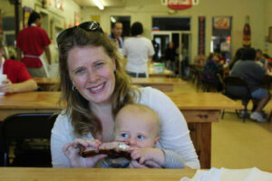 I like to know what people look like because then I can picture them while I read what they write, so here is a picture of me teaching my son to be carnivorous (and hopefully fabulous.)  I may or may not have used Photoshop to make myself appear tanner than in real life. But I’m actually not very good at Photoshop so this is pretty much what I look like.